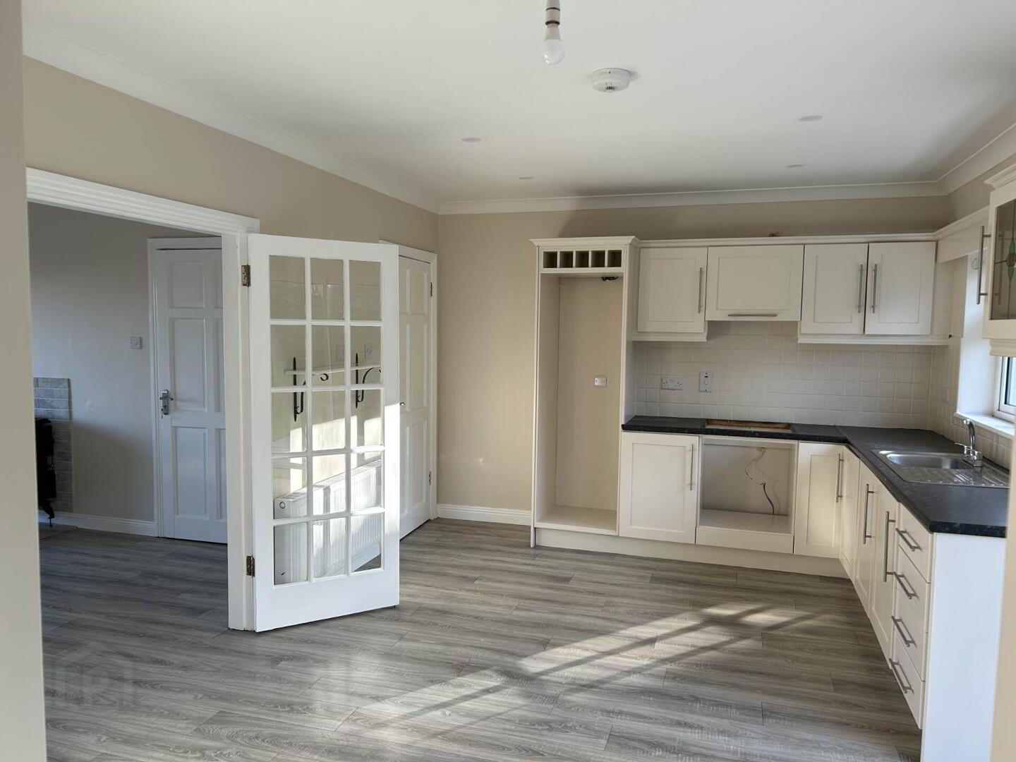 Work top with sink fitted and press space underneath. Oil burner. Plumber for w/m and dryer.