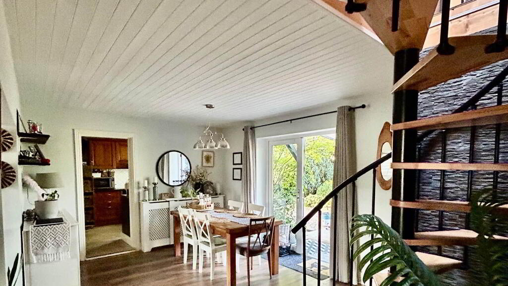 Dining Room - 3.38m (11'1") x 2.68m (8'10") Wood flooring. Patio door to rear gardens. Spiral staircase. Storage press with oil burner.