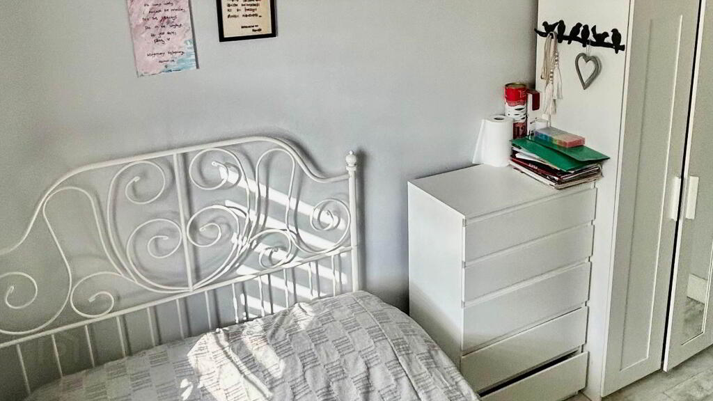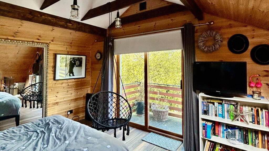 Bedroom 4 Wood flooring, Walk in Wardrobe, WC with WHB, Patio Door to balcony area, Access to attic with storage.