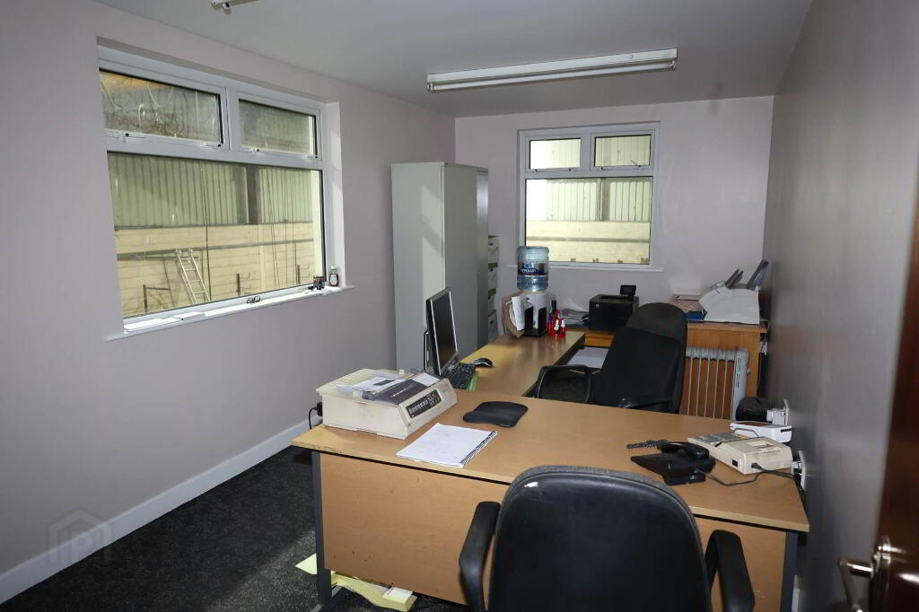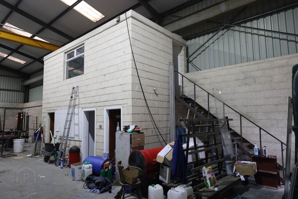 Warehouse/Workshop Unit, part of Ashbury Industrial Estate, located c.1km from Roscrea town centre and c.3km from the M7 motorway. The building is presented in very good condition and is constructed of a steel frame with concrete block and cladding exterior walls. GIA c.297sqm (3196.88 sq.ft) with c.6.7 meter high eaves. There is a Gantry crane included. Vehicle access roller shutter door to the front with c.5 meters clearance height. Pedestrian access door. Non-drip roof cladded sheeting. Ground floor Canteen, and 2 x W.C`s, Office on first floor, GIA c.20 sq. meters. Electricity and mains services connected.